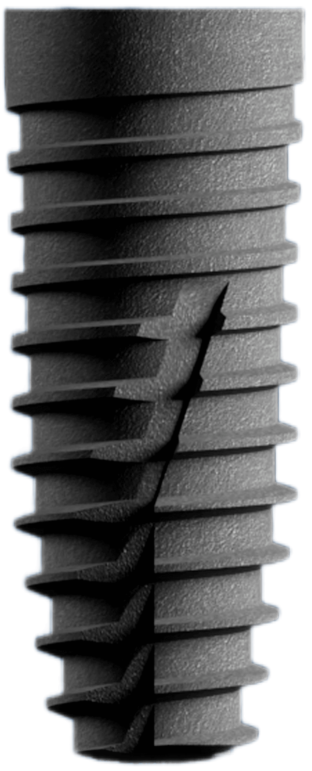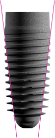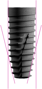 Суженный кончик имплантата позволяет установить больший имплантат через маленькое отверстие в кости (малоинвазивная хирургия, сохранение пришеечной кортикальной кости)